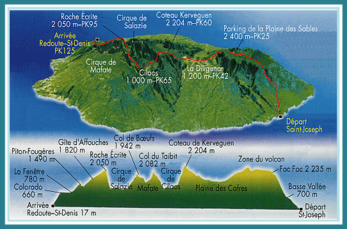 Seit etwa 10 Jahren zieht es mich immer wieder zu den Ultratrails. So wurde ich auch verschiedentlich auf den Grand Raid auf La Réunion aufmerksam gemacht, denn alljährlich wird die Trauminsel im Indischen Ozean, zwischen Madagaskar und Mauritius liegend und zu Frankreich gehörend, zur Pilgerstätte der Ultratrail-Spezialisten. Im Februar dieses Jahres hatte ich dann das nötige Glück und ich bekam eine Startnummer für die 21. Austragung dieses Top-Shot der Trailszene. Ich gehöre zu den wenigen "Gästen", den der Grossteil der Startplätze ist für die Inselbewohner und die Teilnehmer aus dem Mutterland Frankreich reserviert. Somit konnte ich mit den Vorbereitungen und Planungen für dieses Highlight des Jahres beginnen. Das ist nun meine dritte Teilnahme, bereits 2007 und 2009 durfte ich teilnehmen und gehörte auch zu den glücklichen Finishern.Meine Frau Bärbel und ich sind zuerst nach Paris geflogen, von da weiter per Bus zum Flughafen Orly gefahren. Die Flugzeit für die 9.600 KM von hier bis nach la Reunion betrug ca. 11 Stunden ( Nachtflug ). Angekommen auf dem Flughafen Roland Garros in der Hauptstadt St. Denis wurden wir von der Empfangsdelegation des Grand Raid begrüßt. Zur Begrüßung wurden landestypische Esswaren und Getränke gereicht bei musikalischer Unterlalung einer Folkloregruppe. Von dort weiter fuhren wir mit dem Taxi zu unserem Appartement nach St. Clothilde / Ortsteil von St. Denis. Ruhig gelegen mit kleiner Terrasse in einem größerern Gebäudekomplex. Unkosten pro Tag 50,- €, ideal gelegen, alles wichtige erreichbar wie Busbahnhof, Redoute- Sportstadion, Innenstadt etc. in ca. 40 Minuten. Unser Aufenthalt dort war zwei Wochen, durchschnittliche Temperatur 26 Grad, sehr erholsam. Bewußt haben wir uns kein Auto gemietet, weil wir sämtliche Wege zu Fuss machen wollten oder weitere Strecken mit dem öffentliche Bus fahren wollten. Pünktlich fahrende Busse und geringer Fahrpreis machten dieses zum Erlebnis. Speziell die Direktverbindung A2 nach St. Gilles zum Strand mit dem Schnellbus hat uns sehr erfreut.