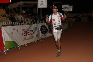 Nun zum Wettkampf! Ich war erholt und gut vorbereitet! Ich konnte dank meinem Freund Günter ein paar Höhenmeter in Italien trainieren. Dazu hatte ich noch knapp 3 Monate intensives Laufen an meiner geliebten Halde hinter mich gebracht! Wer dort mal was starten möchte!? Einmal rauf sind genau 130 Meter! Also für 1000 Höhenmeter wuchtet man sich dann 8 mal die Halde hoch!Der Lauf war eine Erfahrung für mich die ich so noch nicht erlebt habe! Ich wusste zwar das man im Sport immer an seine Grenzen gelangen kann! Aber ich habe dort gelernt das man wirklich Herr über sich selbst sein kann auch dann wenn der Körper einem schon längst sagt bis hier und nicht weiter!Wir sind die ganze Nacht nonstop gelaufen. Die ersten Anstiege waren für mich unglaublich! Stellt Euch vor Ihr steht vor dem Turm unserer Müllverbrennung es ist dunkel und über Euch seht Ihr nur die Positionslichter des Turms! Und Ihr wisst dass Ihr dahin müsst wo diese Lichter sind. Dann fangt Ihr an zu klettern und bei jedem Meter den Ihr höher kommt entfernt sich das Licht weiter nach oben… meine Turmlichter waren Läufer mit Signallampen! Nach knapp 10 Km und 1200 Metern rauf Hatten wir dann endlich Tamadaba erreicht dort kurz ein Stück Apfelsine erhascht und schnell weiter zum ersten Abstieg! Das Halden Training hat sich ausgezahlt! Und der Lauf hat ab hier einfach nur noch Spaß gemacht! Wir haben Km für Km abgespult irgendwann ging dann die Sonne auf. Und wir hatten uns ein gutes Zeitpolster erlaufen (welches wir später auch gut gebrauchen konnten!) Ab Garanon (Km 82) habe ich mir dann bei einem relativ harmlosen Abstieg die Oberschenkel vermutlich etwas zu stark beansprucht!? Und ab diesem Zeitpunkt war das Laufen bei den Abstiegen (und es sollten nur noch Abstiege sein!) nur noch unter Schmerz und mit halber Geschwindigkeit möglich. Zwischendurch habe ich es immer wieder geschafft den Kopf einfach auszuschalten und konnte weiter laufen als wenn nichts wäre! Dennoch ist unser Polster gegen 0 geschrumpft. Irgendwann kam dann auch die Erschöpfung hinzu! Aber es ging weiter immer weiter!!!! Wenn mir heute jemals jemand erzählen möchte was geht und was nicht geht, hole ich mir dieses Erlebnis in Erinnerung und werde vermutlich nur kurz lächeln! In Machacadora (Km 119,5) kam dann etwas was wir gar nicht auf der Fahne hatten! Laut unserer Rechnung würden wir die Zeit unter 30 Stunden einhalten können. Aber der gute Mann am Checkpunkt hatte uns zu verstehen gegeben, dass wir nicht durchs Ziel dürfen weil wir zu spät seien! Ich glaube es drehte sich um 10 oder 15 Minuten. Selbst ein Telefonat hatte nichts mehr bewirken können! Wir waren also quasi in der vorgegebenen Ziel Zeit aber durften nicht Finishen! Das war schon grausam! Da läuft man quasi 30 Stunden durch und hat nichts davon habe ich mir zu diesem Zeitpunkt gedacht! Und war Sauer und enttäuscht…Wir sind dann aber trotzdem weitergelaufen und das war gut so! Den so kann ich mir selber sagen „Ich habe es geschafft und bin in der Zeit geblieben“! Alles andere ist nur ein Name in einer Liste! Interessant war, ist das wir unsere Finisher Weste dennoch bekommen haben. Ich bin zwar ein Triathlet! Aber solche Läufe werde ich bestimmt in Zukunft weiter besuchen weil es einfach nur Erlebnis Pur ist! An dieser Stelle möchte ich noch einen besonderen Dank an meinen Freund Günter Sadowski richten! Durch Günter bin ich erst in den Genuss dieser tollen Lanschafts Läufe gekommen. Sei es die Harzquerrung oder unbeschreibliche Trainingsstunden zu Fuß oder mit dem Rad, in Italien am wunderschönen Largo Maggiore oder aber auch so was Verrücktes und Außergewöhnliches wie der Transgrancanaria Trail es ist immer eine Freude mit Ihm unterwegs zu sein und auf seine unglaubliche Erfahrung im Ausdauer und Ultrasport zurückgreifen zu dürfen! Und natürlich muss ich mich auch bei meiner Familie, speziell bei Kathrin dafür bedanken, dass sie mir überhaupt erst die Möglichkeit einräumt so viel Zeit mit dem Sport zu verbringen! Ohne diese Unterstützung und dem Verständnis für meine manchmal wahnwitzigen Unternehmungen wäre das alles gar nicht möglich! Ich freu mich schon auf das was noch so folgt im Jahr 2014! Ich werde wie gewohnt hier berichten!